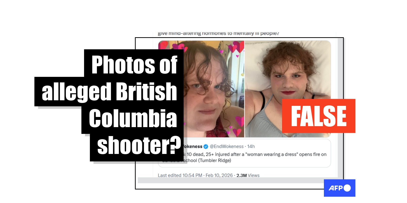 Other posts on X, Instagram and Facebook, including from American comedian Terrence K. Williams and conservative commentator David J. Harris -- both of whom have amplified numerous false claims fact-checked by AFP -- spread the same images claiming they showed the Tumbler Ridge shooting suspect. Many of the posts were accompanied by transphobic comments.