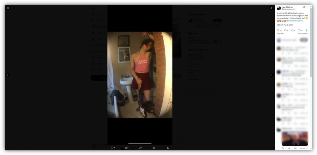On X, Vrillium further acknowledged that he is the person in the image and replied to some users to clarify that he was "not the shooter." In one post referencing an American comedian who is commonly blamed for shootings as part of a long-running internet hoax, Vrillium wrote: "Bro cmon don't Sam Hyde me here."