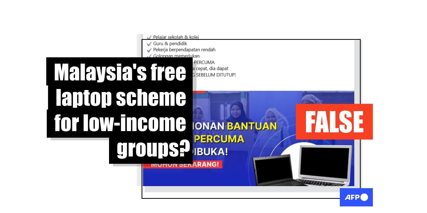 The Malaysian government is not giving away free laptops to low-income groups, contrary to social media posts directing users to imposter government websites that ask for personal information. Malaysia's Finance Ministry says the posts are spreading "fake news" and warned the public against clicking suspicious links and sharing information with unauthorised sources.