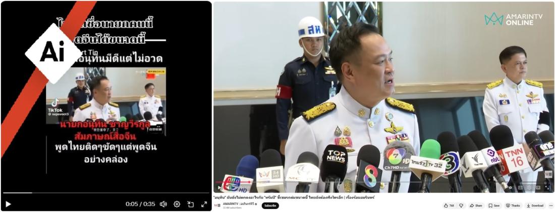 Thai broadcaster Amarin TV's logo is visible in the video's top-right corner, and a subsequent keyword search found it had also been published on the broadcaster's YouTube channel on December 13, 2025 (archived link).