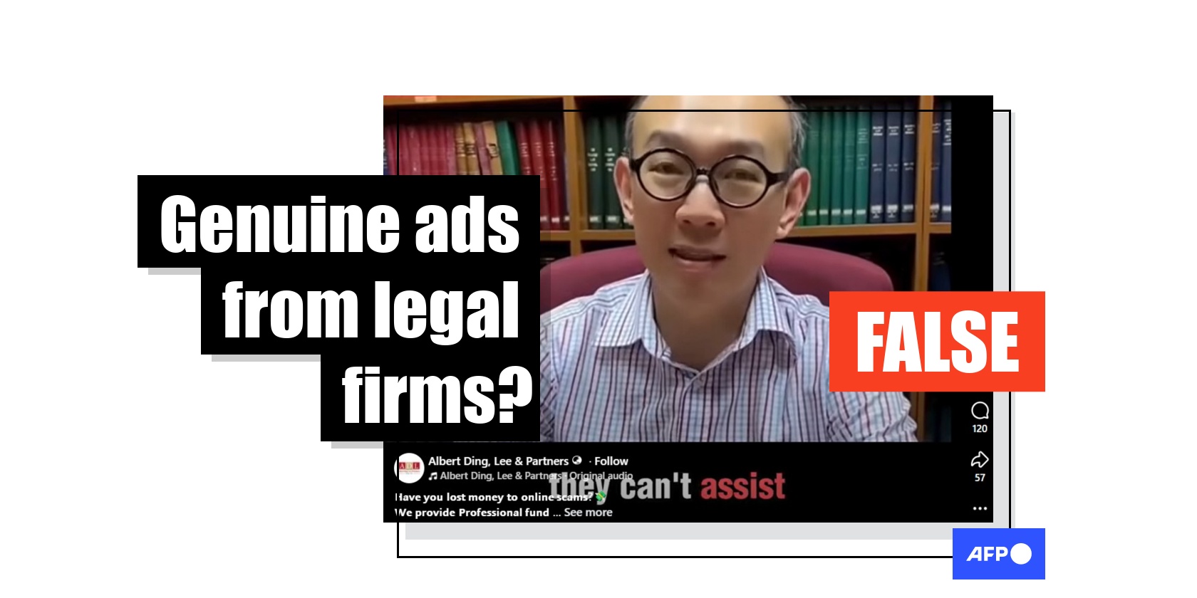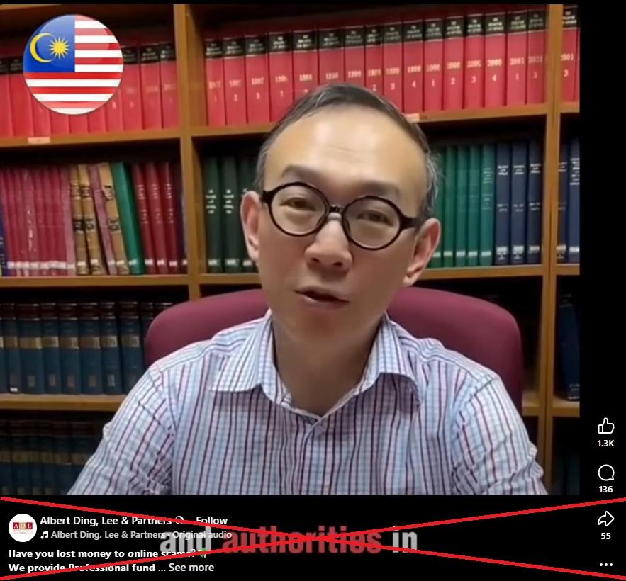 "Have you lost money to online scams? We provide Professional fund recovery support consultation and no upfront fees," reads a Facebook post published on January 16 by an account under the name "Albert Ding, Lee & Partners", a law firm based in the southern state of Johor.