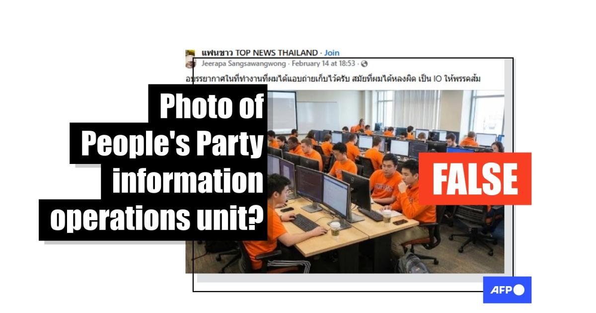 The Thai opposition People's Party has come under fire after a former member said it runs an internet monitoring team that smears critics and shapes online discourse, but an image circulating on social media purportedly showing the operation is AI-generated. It contains the watermark of Google's AI assistant, has visual errors indicative of synthetic content and differs from footage published by local media.