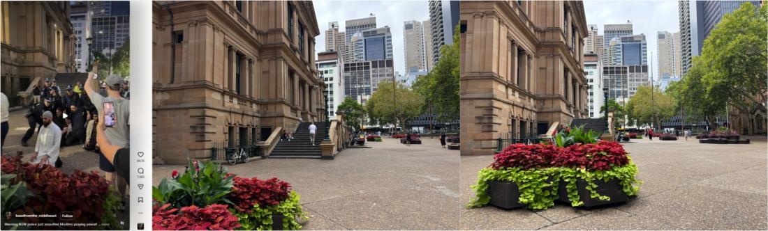 AFP visited the square on February 19, right by Sydney Town Hall where the scuffle took place, and found that the full planter does not have any memorial displays.