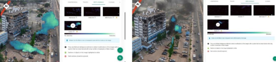 Further forensic analysis of the images using VeraAI also revealed visual elements consistent with manipulation, particularly in the smoke patterns.