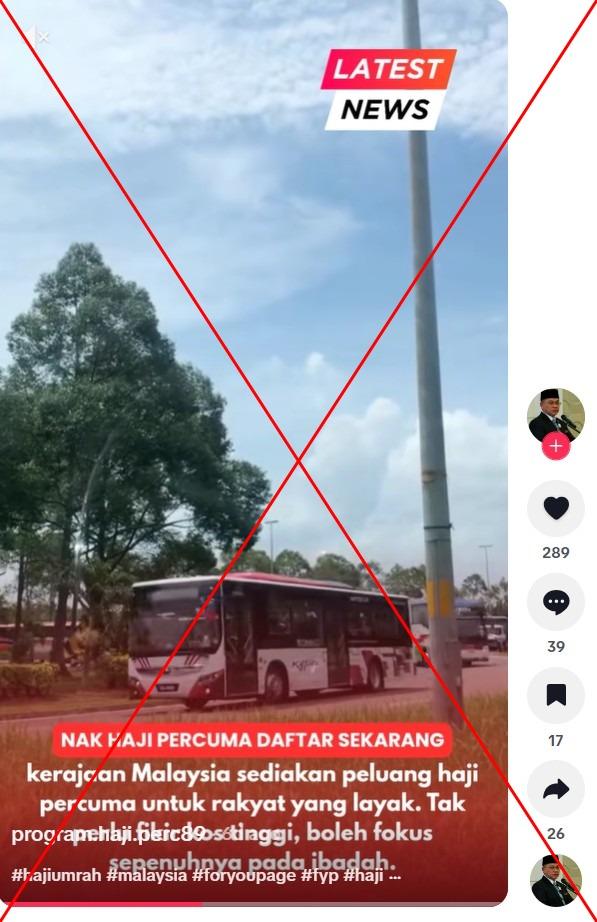Similar claims superimposed over footage of buses and Muslim pilgrims boarding a Tabung Haji vehicle were shared across TikTok.