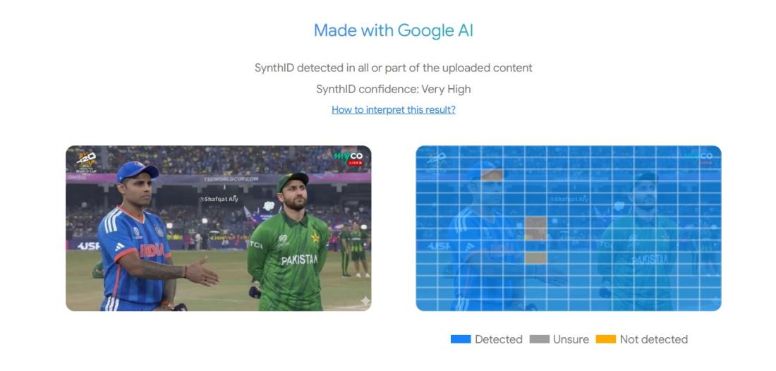 Further analysis of the video on Google's AI detection tool SynthID found a "very high" likelihood the image was created using AI tools (archived link).