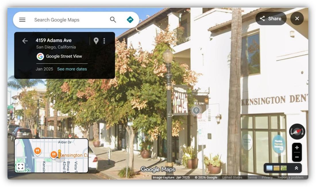 Online searches and Google Street View imagery confirm the store is part of a multi-use development that also includes Kensington Commons, an apartment complex housing 34 units (archived here and here). A residential balcony is visible directly above the storefront (archived here).