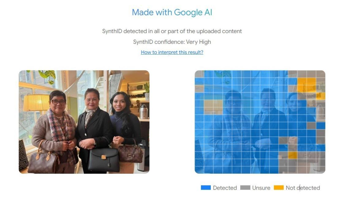 AFP ran the photo through Google's SynthID detector, a tool designed to identify AI-generated content, which confirmed with a "very high" degree of confidence that they were created using the company's AI tools (archived link).