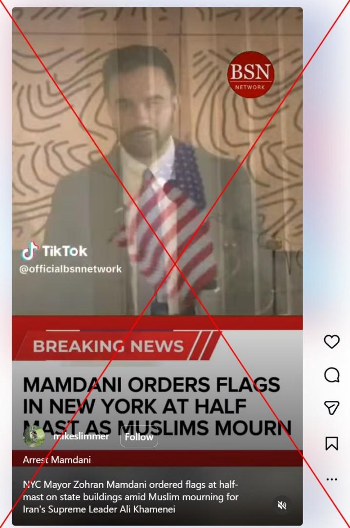 Zohran Mamdani's Muslim faith has been repeatedly targeted by misinformation, including after US attacks on Iran, when social media posts accused him of flying flags at half-mast to mark the death of Iran's supreme leader. But the New York City mayor gave no such order; the claim originated with a satire site.