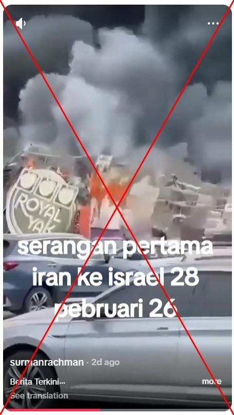 "Reports of fire and smoke at an Israeli air base following a missile attack; the situation remains unclear," reads its Indonesian-language caption.