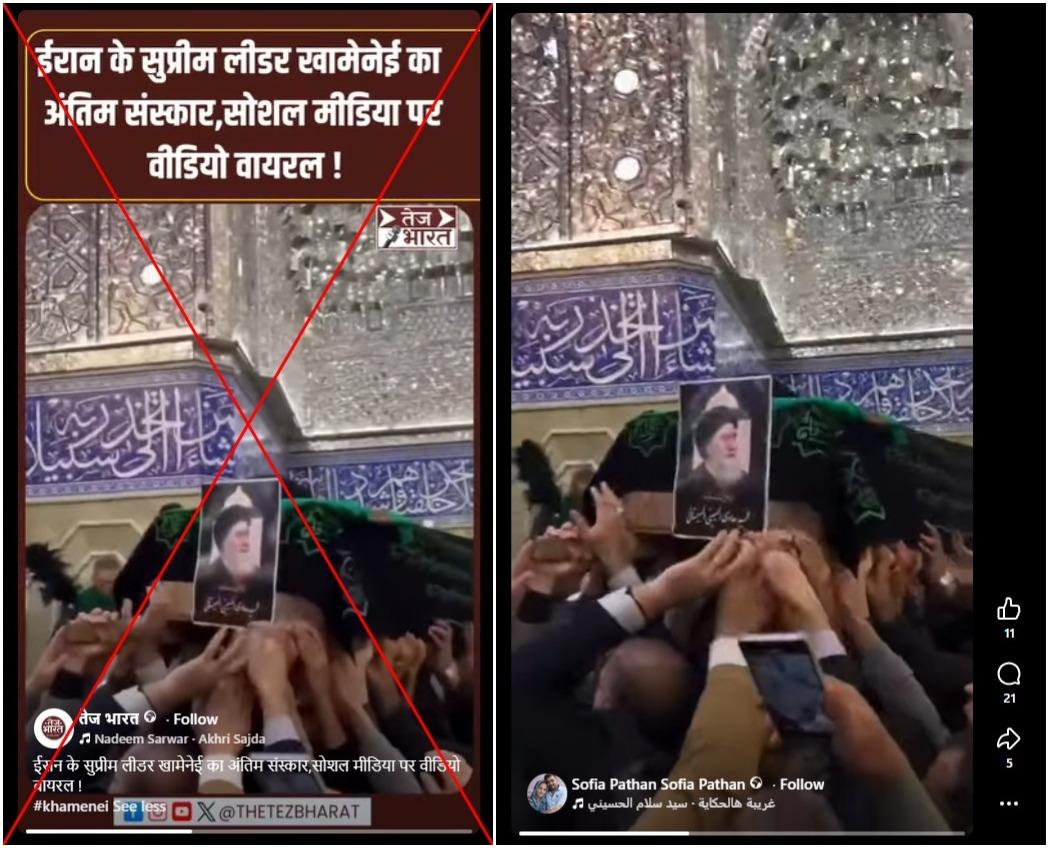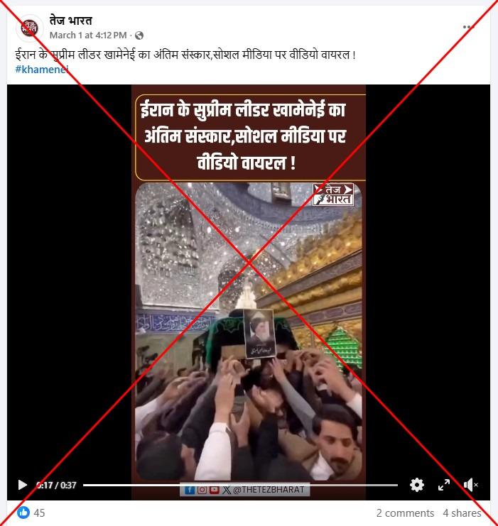 "Funeral of Iran's Supreme Leader Khamenei, video goes viral on social media," reads a Hindi-language Facebook post shared March 1, 2026.