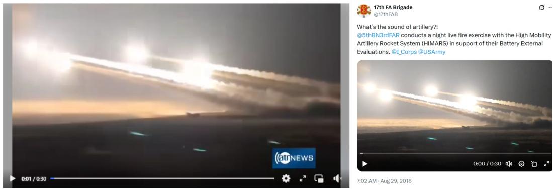 A reverse image search on Google using keyframes of the false post clip found an identical video shared on X by the 17th Field Artillery Brigade of US Army on August 29, 2018 (archived link).