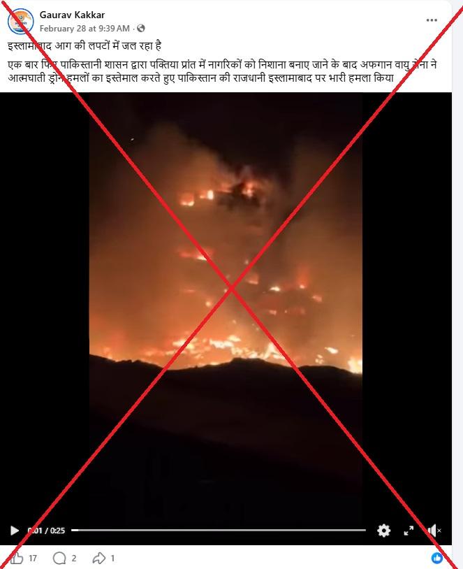 Another video circulated alongside similar claims in a Hindi-language Facebook post on February 28 which shows a massive fire and smoke billowing from a building in a residential area.