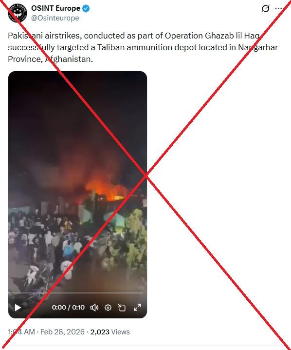 "Pakistani airstrikes, conducted as part of Operation Ghazab lil Haq, successfully targeted a Taliban ammunition depot located in Nangarhar Province, Afghanistan," reads a X post shared on February 28, 2026.