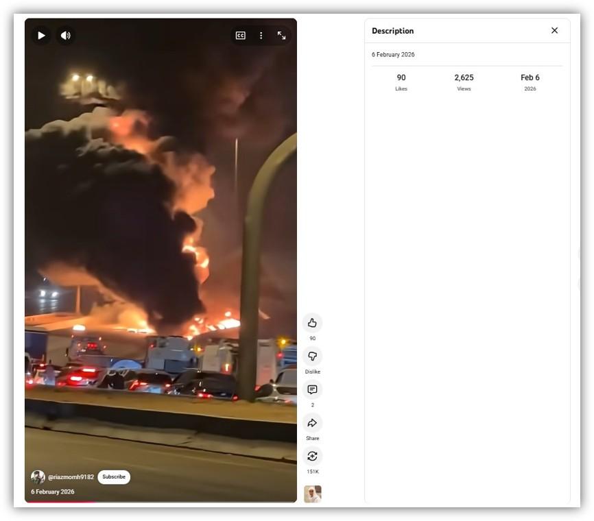 Reverse image searches found the same footage circulating on social media as early as February 6, 2026, before the outbreak of the war (archived here, here and here). Comments on the posts described a fuel tanker that caught fire, with some suggesting the video was a year or several years old.