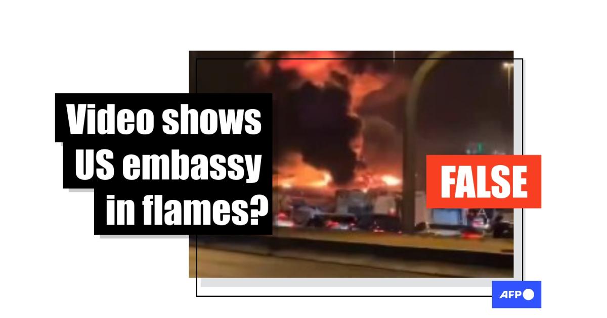 An attack by two drones sparked a small fire at the US embassy in Saudi Arabia as Iran retaliates across the Gulf after US-Israeli strikes killed its supreme leader, but a video spread widely across platforms is unrelated to the escalating war in the Middle East. The clip has been online since at least early February 2026, and AFP geolocated it to a Riyadh highway kilometers from the embassy.