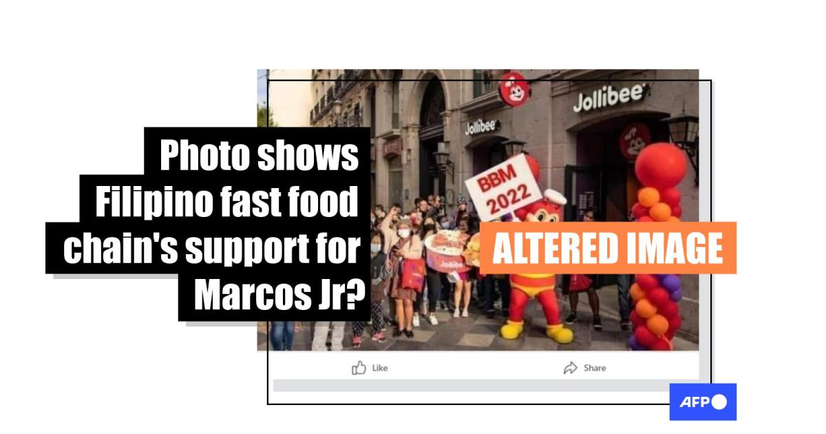 Photo of Filipino fast food chain mascot doctored to include support for presidential hopeful Marcos Jr
