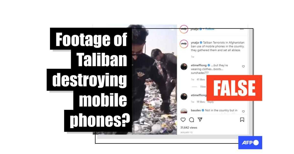 “Taliban Terrorists in Afghanistan ban use of mobile phones in the country, they gathered them and set all ablaze,” reads the caption on social media posts published by popular Nigerian youth-focused blog YNaija on January 13, 2022.