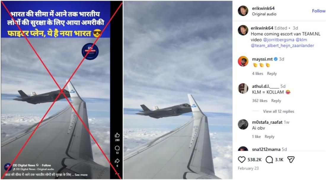 Dutch military escort misrepresented as US jet protecting Indian airliner
