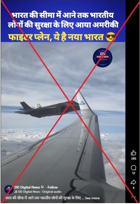"American fighter planes arrived to protect Indians until they reached Indian territory," reads a Hindi-language Facebook post with the video shared on March 6, 2026, carrying hashtags that include "Israel Iran Conflict" and "Iran News".