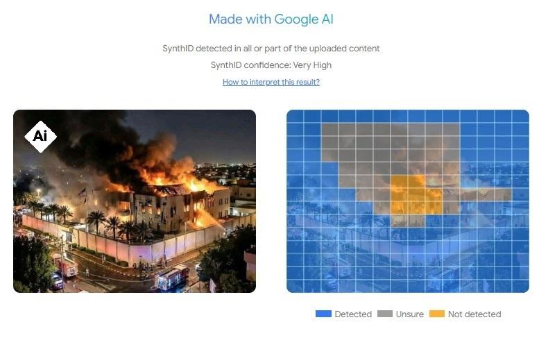 An analysis using Google's SynthID detector -- launched by Google in May 2025 to identify AI-generated content -- found with a "very high" level of confidence that the image was created using the company's AI tools (archived link).