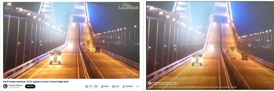 “Kerch bridge explosion: CCTV appears to show Crimea bridge blast,” reads the video's title.
