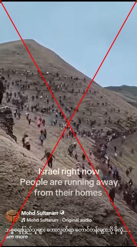 "125 Israelis have died from Iran's retaliatory strikes on Israel. Now Israelis are fleeing through the mountains for safety," reads the Burmese-language caption of a Facebook reel shared on March 10, 2025.