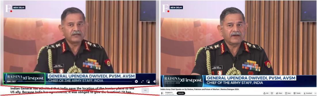 Deepfake video of Indian general shared with false claims about torpedoed Iran ship