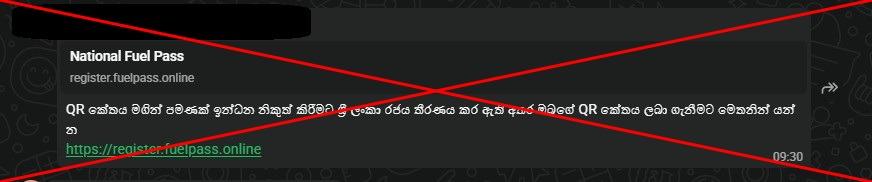 Sri Lanka reintroduced a system designed to ration fuel purchases as the Middle East war strained supplies, but a link shared in posts urging users to sign up for the National Fuel Pass does not point to the government's official registration website. The state-run Ceylon Petroleum Corporation told AFP the link is "fake", while an information technology official warned the site was being used by scammers to steal personal information.