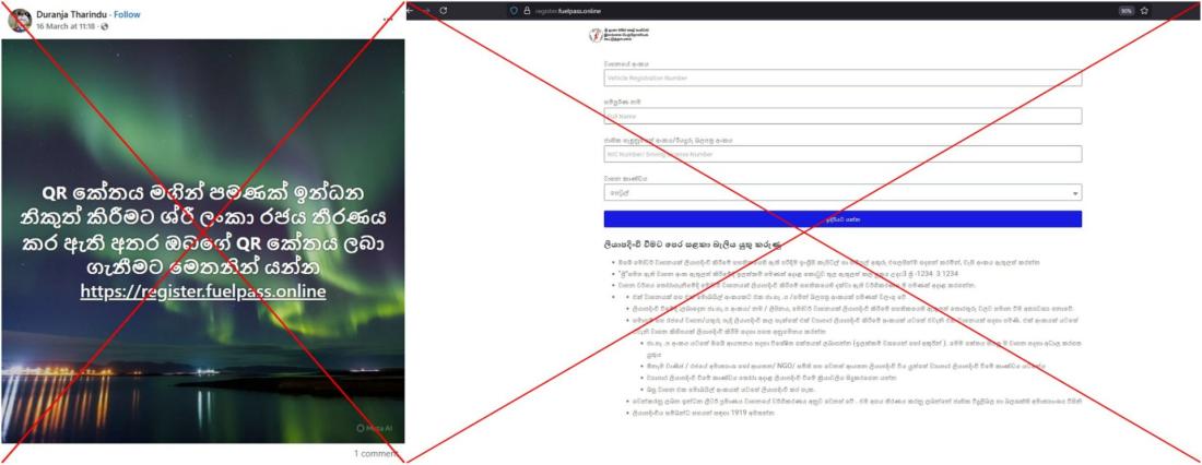 "The government of Sri Lanka has decided to release fuel only to those who have a QR code. Go here to get your QR code," reads a Sinhala-language Facebook post shared on March 16, 2026.