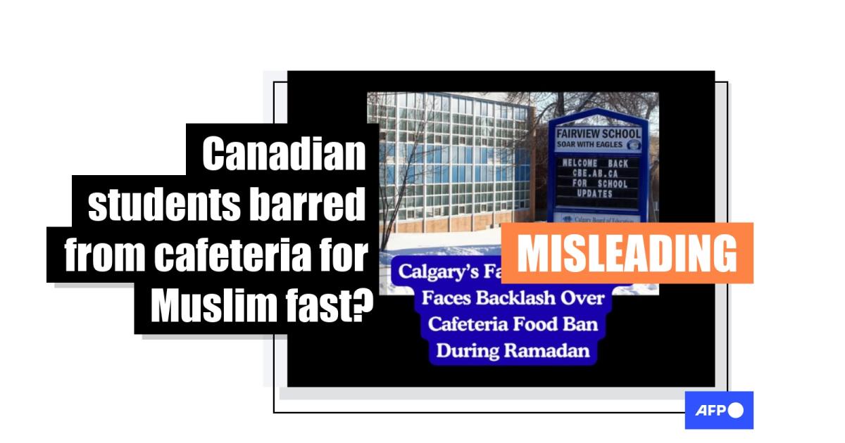"Fairview school in Calgary Alberta has implemented bans all food from its cafeteria and lunchroom for Ramadan," claims a March 14, 2026 X post from the account "@Tablesalt13," which previously spread misinformation debunked by AFP.