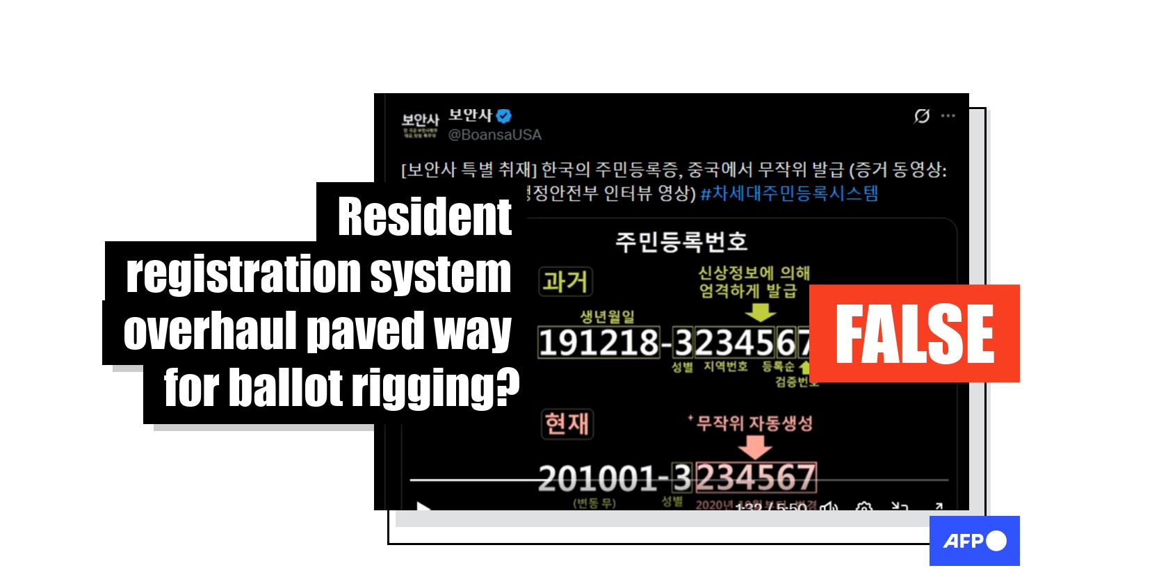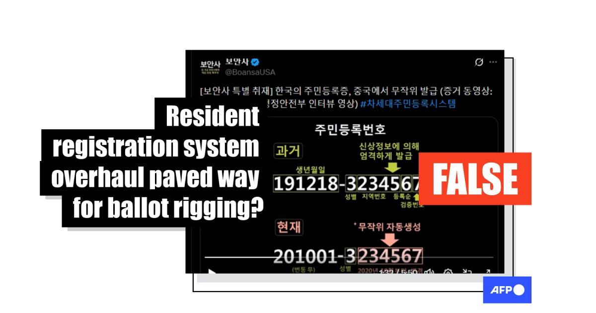 Anti-China sentiment and vote rigging allegations have long intertwined in South Korea's far-right communities, with the latest example circulating on social media falsely claiming changes to the resident registration system in 2020 enabled Chinese nationals to commit fraud. The interior ministry dismissed as "entirely false" the assertions made in the posts, which also misrepresented an informational video as an exposé of the supposed cheating scheme.