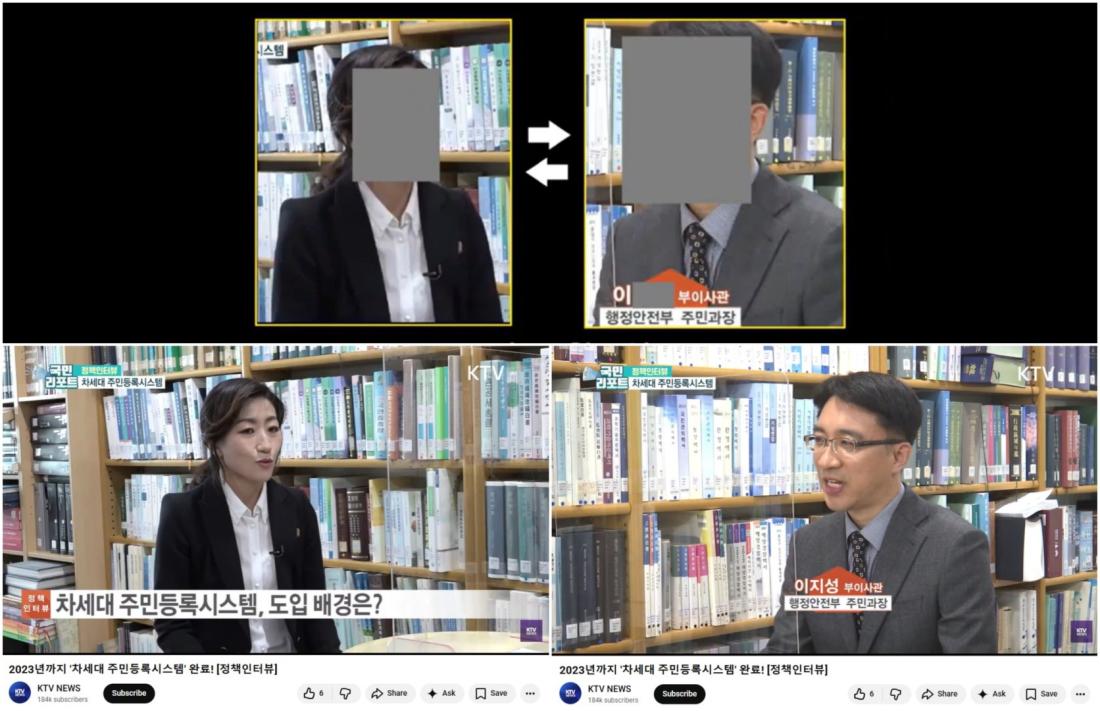 The video is titled, "'Next-generation resident registration system' to be completed by 2023!", and the figures are identified as KTV journalist Jang Ji-na and Lee Ji-seong, who worked at the interior ministry's resident registration division at the time, ministry documents show.