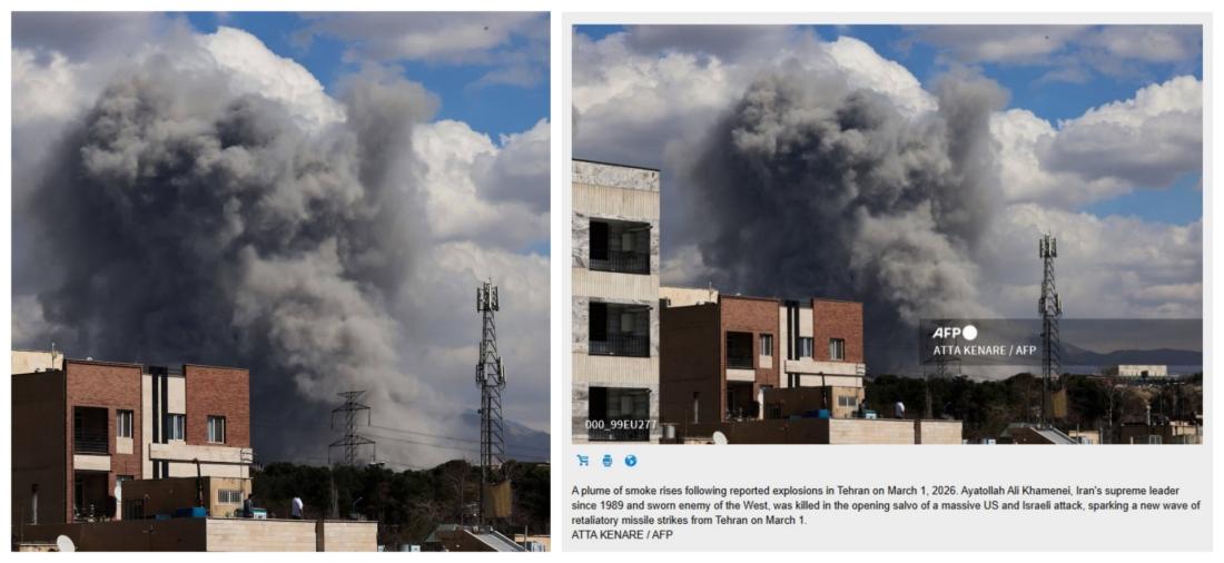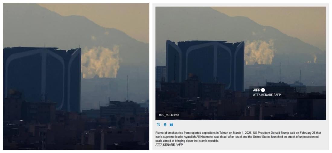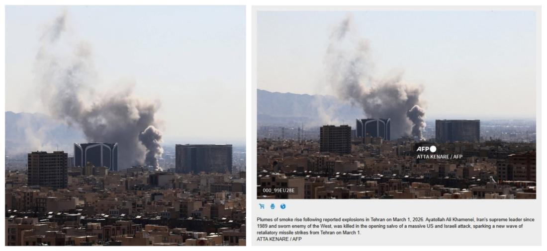 The remaining three photos were published by AFP and also show the strikes on Tehran on March 1, credited to AFP photographer Atta Kenare.