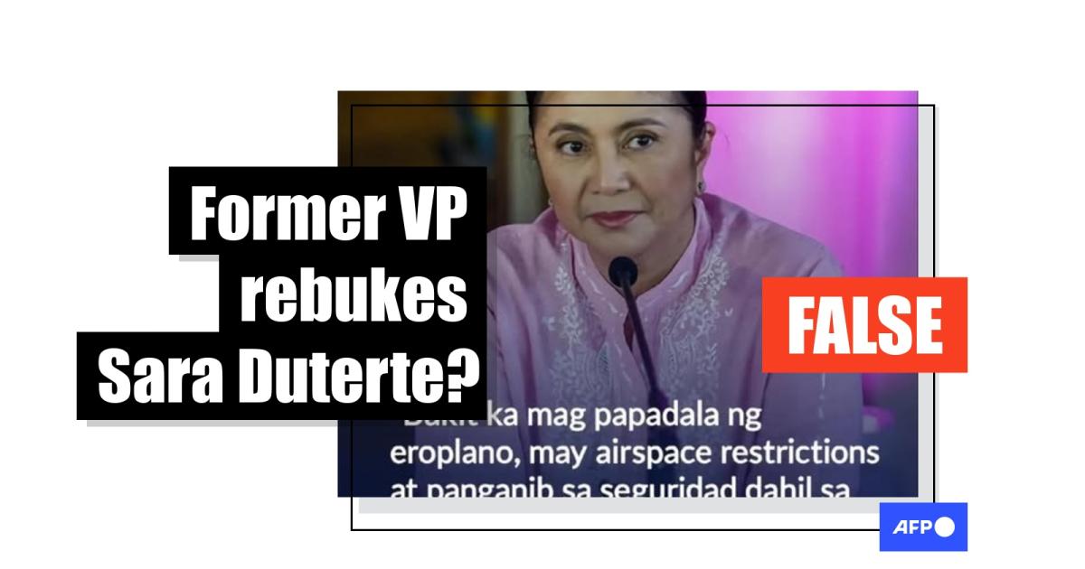The Philippine presidential office rebuked Vice President Sara Duterte for saying repatriation flights for overseas Filipino workers in the Middle East affected by the ongoing war would be easy to arrange, but posts that claim to show her predecessor joining the president in criticising her share a fabricated quote. The graphic attached to the posts was made by an account that impersonates the Philippine broadcaster GMA News.