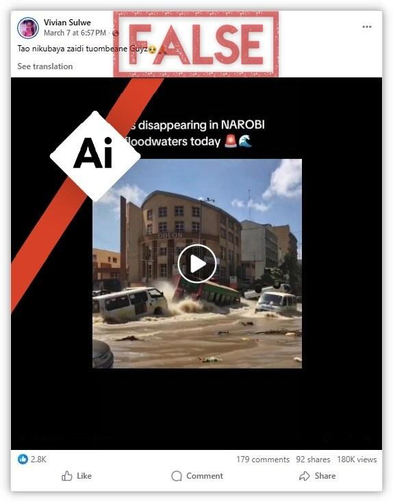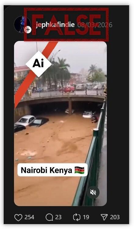 At least 70 people have been killed in Nairobi following torrential rains in the Kenyan capital in March 2026. However, several videos and images circulating online purporting to show the devastation were generated using artificial intelligence (AI) tools.