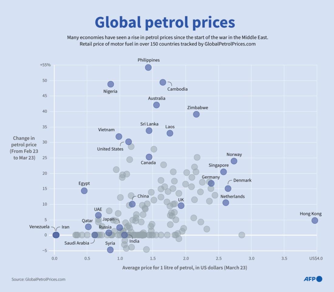 "The oil market is global so a disruption of oil supplies transiting the Strait of Hormuz increases prices around the world," she told AFP in a March 26 email.