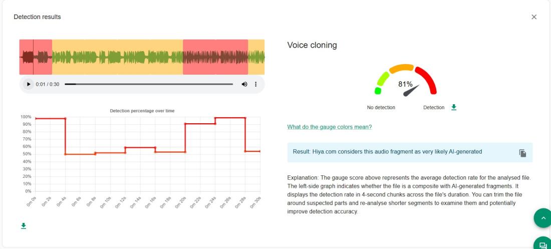 But a voice-cloning detection tool Hiya found that the video had an 81 percent probability of being altered by AI tools (archived link).