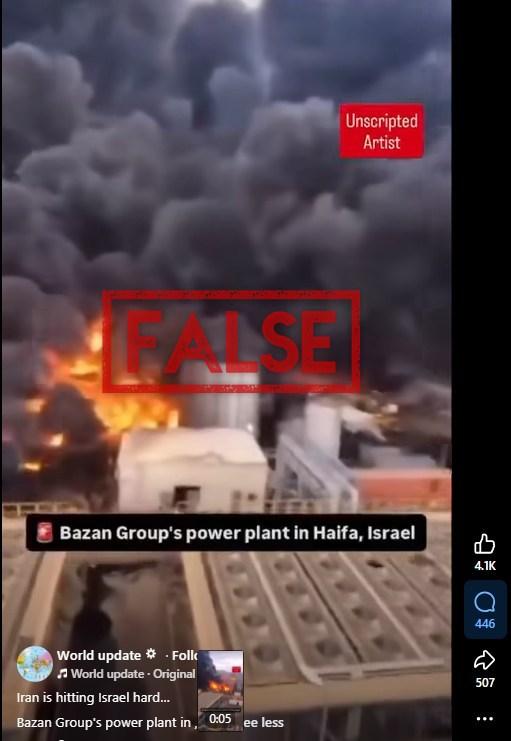 However, the video does not show an Iranian attack on a power plant in Haifa.