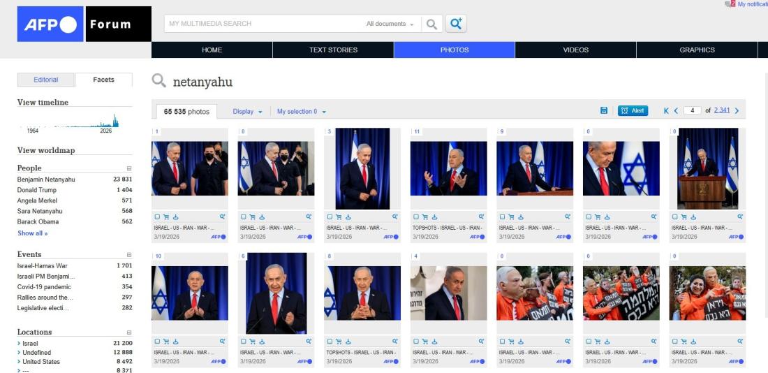AFP distributed pool photos of Netanyahu at a media briefing on March 19, while photo agency Getty released photos of him at the site of an Iranian missile strike in southern Israel on March 22 (archived here and here).