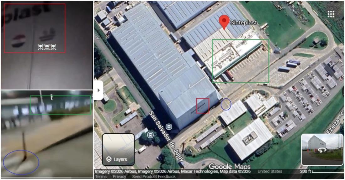 The report says the video shows Sinteplast employees running from the blast, and the footage matches satellite imagery of the Sinteplast facility available on Google Maps (archived link).