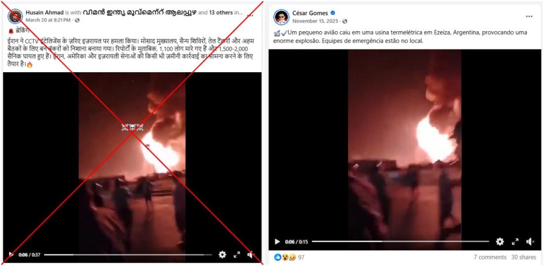 A reverse image search on Google using keyframes from the falsely shared video found the same footage shared in a Facebook post on November 15, 2025 (archived link).
