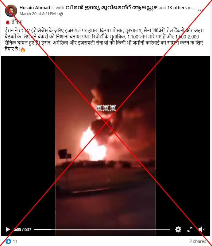 "Breaking. Iran attacked Israel using CCTV intelligence. Mossad headquarters, military camps, oil tankers, and bunkers used for important meetings were targeted," reads part of the Hindi-language Facebook post shared on March 20, 2026.