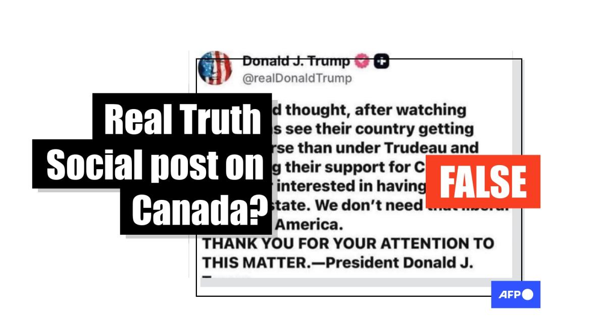A supposed screenshot from the US president's Truth Social profile spread across networks, claiming it showed Donald Trump abandoning his previous insinuation that Canada should become a part of the United States. But the post does not appear in live or archived versions of Trump's accounts and seems to have been posted as satire.