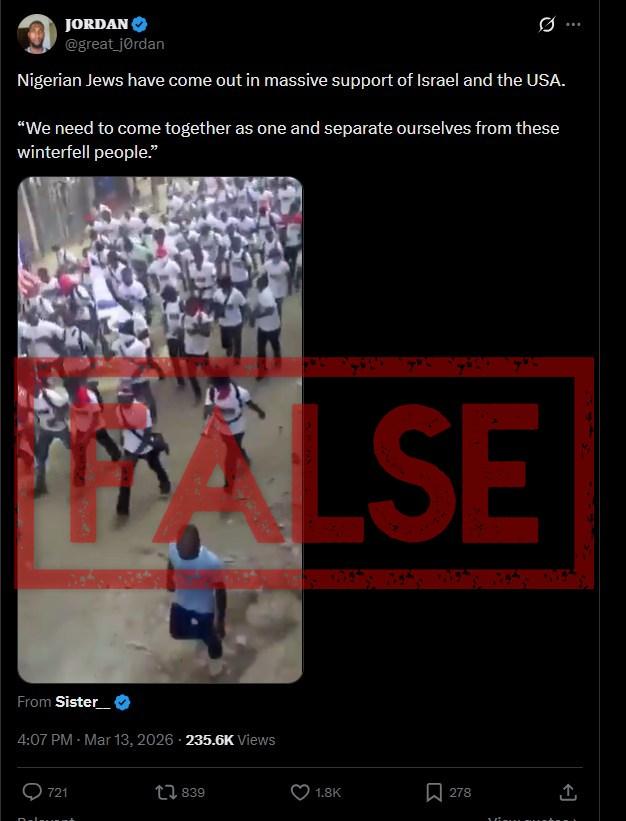 Clip of 2018 pro-Israel rally in Nigeria falsely linked to Mideast war
