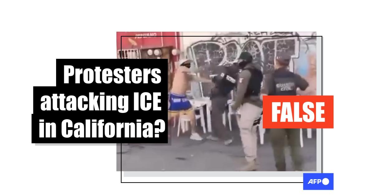 Protesters have frequently confronted Immigration and Customs Enforcement (ICE) agents carrying out US President Donald Trump's aggressive deportation policies, but online claims that a video shows fed-up Los Angeles residents violently chasing away an officer are false. The clip actually shows a February 2026 brawl involving workers and police at a wholesale market in the Mexican state of San Luis Potosi.