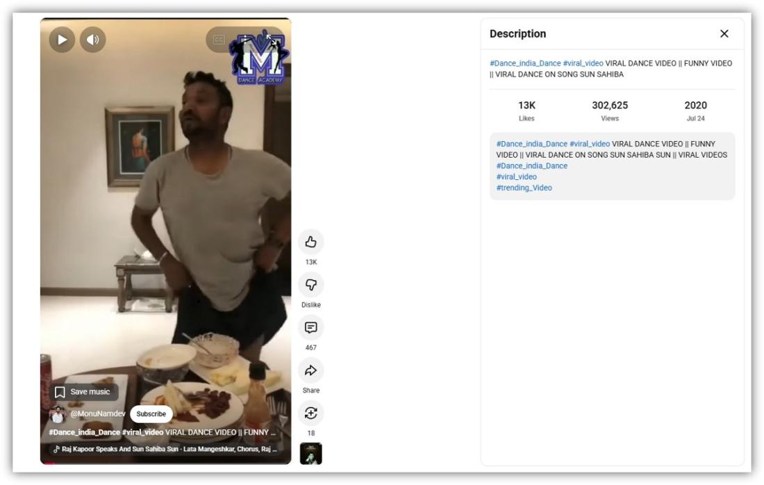 Reverse image searches revealed the footage has been online since at least July 2020, with one of the earliest posts on YouTube saying the man was dancing to the late Indian singer Lata Mangeshkar's "Sun Sahiba Sun," a song from the 1985 Bollywood romantic drama film "Ram Teri Ganga Maili" (archived here, here, here and here).