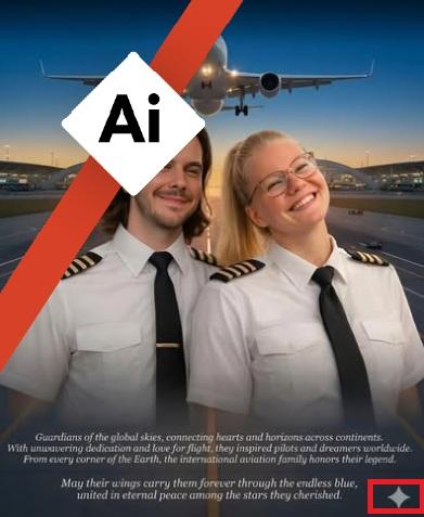 The epaulettes, or stripes on the shoulders of the pilot uniforms, also appear melted into the fabric, another element common in AI-generated imagery.