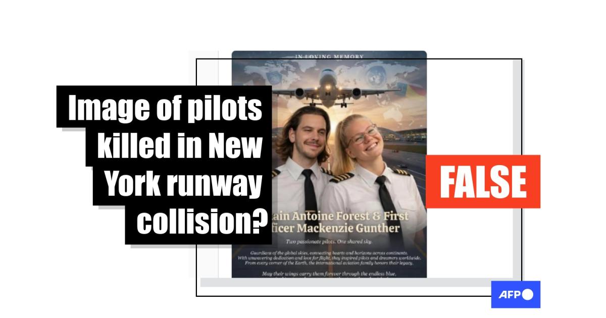 Two pilots were killed and dozens of people injured when an Air Canada plane collided with a fire truck on a runway at New York's LaGuardia airport. But the outpouring of social media tributes that followed the deadly incident included an AI-generated image that falsely depicted the two young aviators who died in the cockpit and incorrectly identified one as a woman.