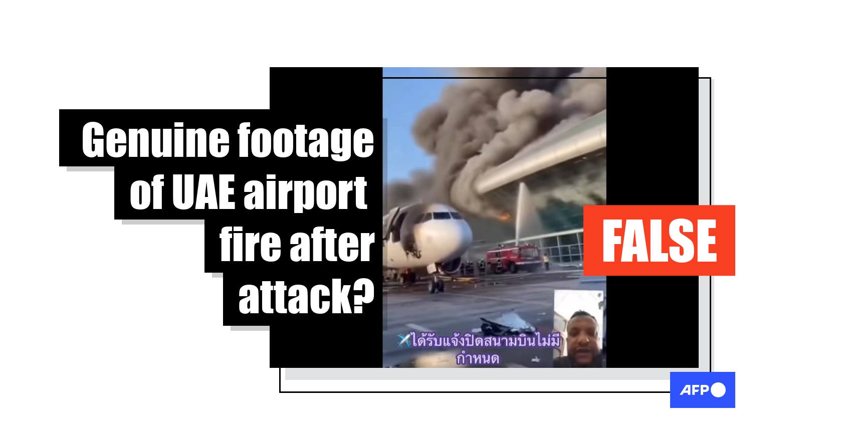 An AFP photograph also shows the aircraft's tail in the AI clip does not match the livery used by Emirates, the UAE's flag carrier (archived link).